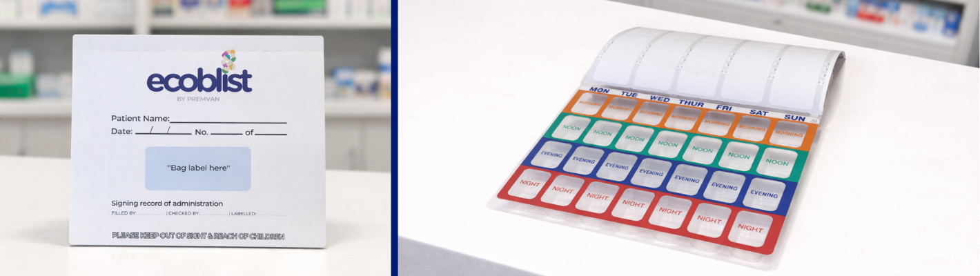 Ecoblist is our own, Premvan branded weekly medication system, developed to support modern dispensing workflows while reducing environmental impact. Designed with both pharmacy teams and end users in mind, it offers a practical, easy-to-use alternative to traditional MDS blister packs.